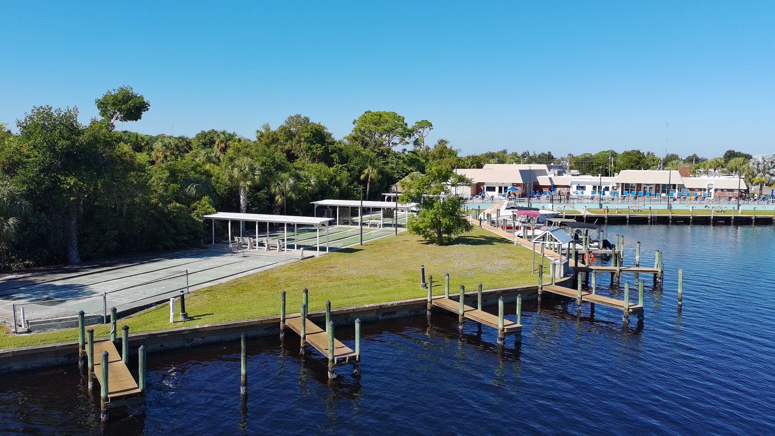 In addition to fitness and recreational amenities, Old Bridge Village boasts a variety of facilities designed to enhance your lifestyle. Palm Point, an 8.5-acre greenspace along the riverfront, offers a tranquil setting for birdwatching, fishing, picnicking, and enjoying nature. Our deep-water marina features 81 slips and provides direct access to the Gulf of Mexico and the Atlantic, making it a paradise for boating enthusiasts. The clubhouse is the social heart of our community, hosting events, gatherings, and activities for all residents. Whether you are practicing your golf skills at our putting green and driving net, enjoying a leisurely game of horseshoes, or participating in one of our many social clubs, Old Bridge Village ensures that every day is filled with opportunities for relaxation, fun, and community engagement.